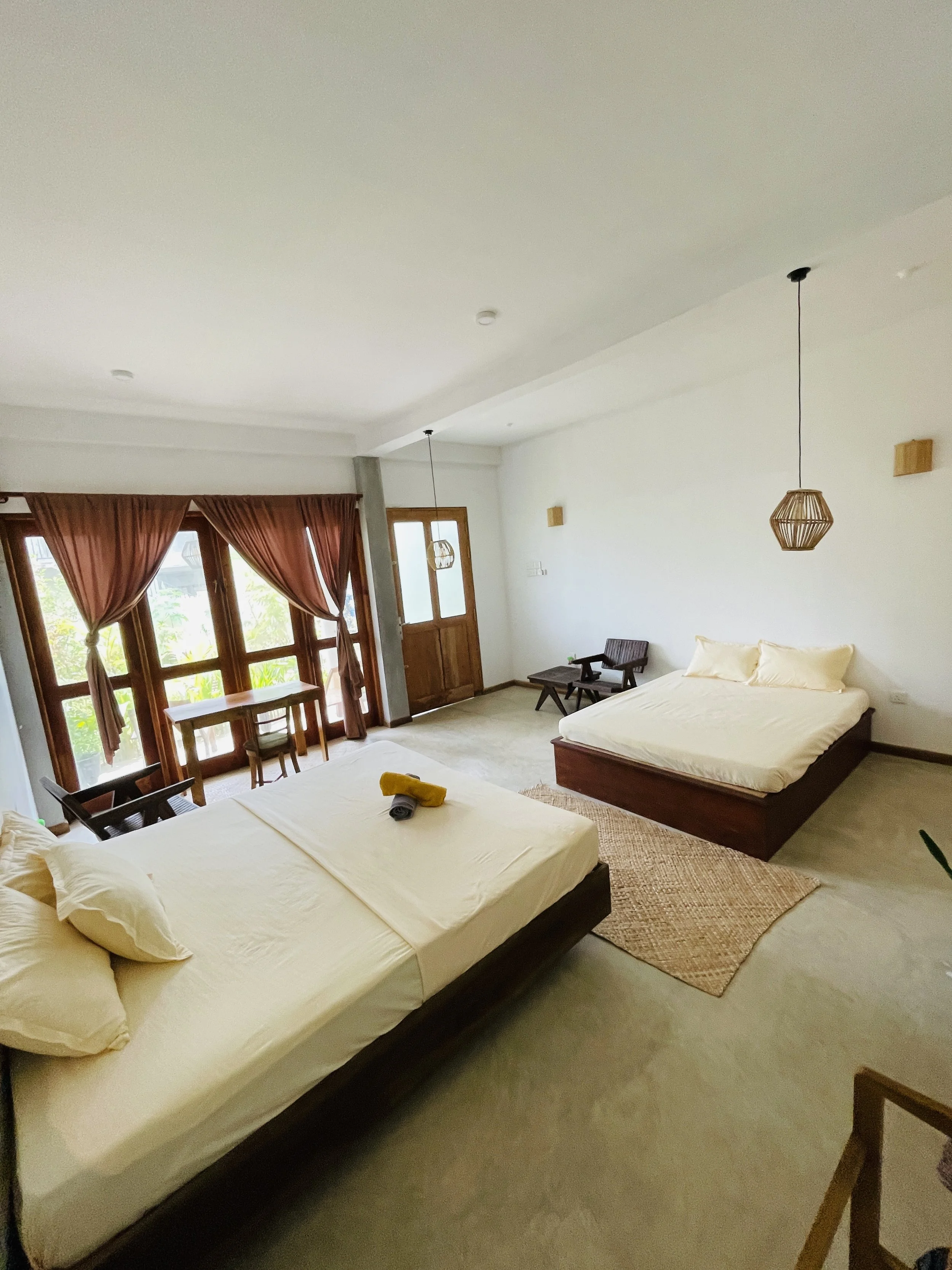 The Garden gives you great privacy with large verandas and comfortable seating to while away the afternoon while working or relaxing between surfing sessions or after traveling around the local nearby sites like Galle, Weligama, Ahanguma and more.