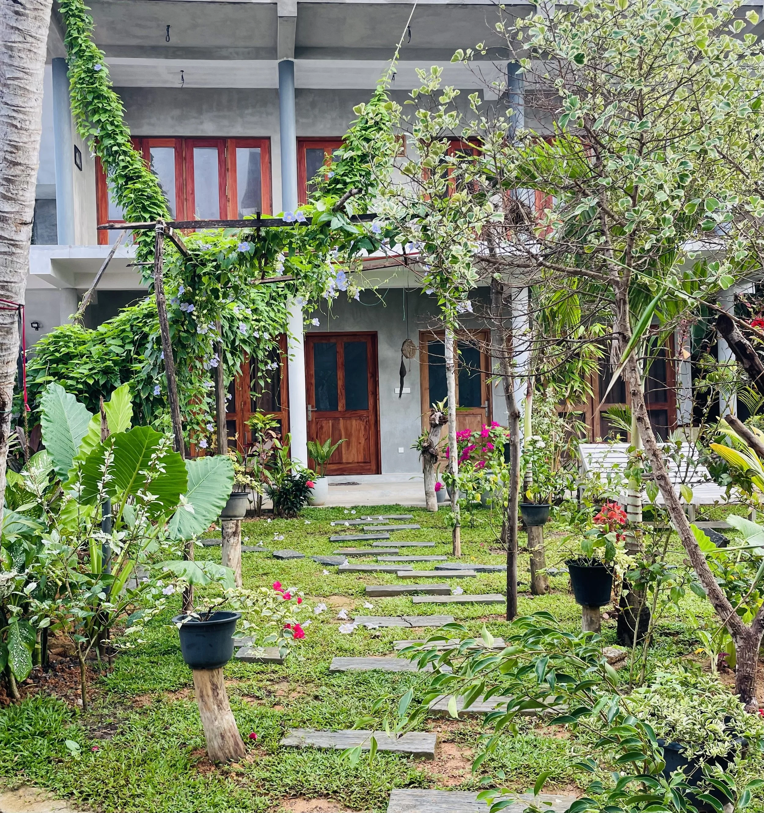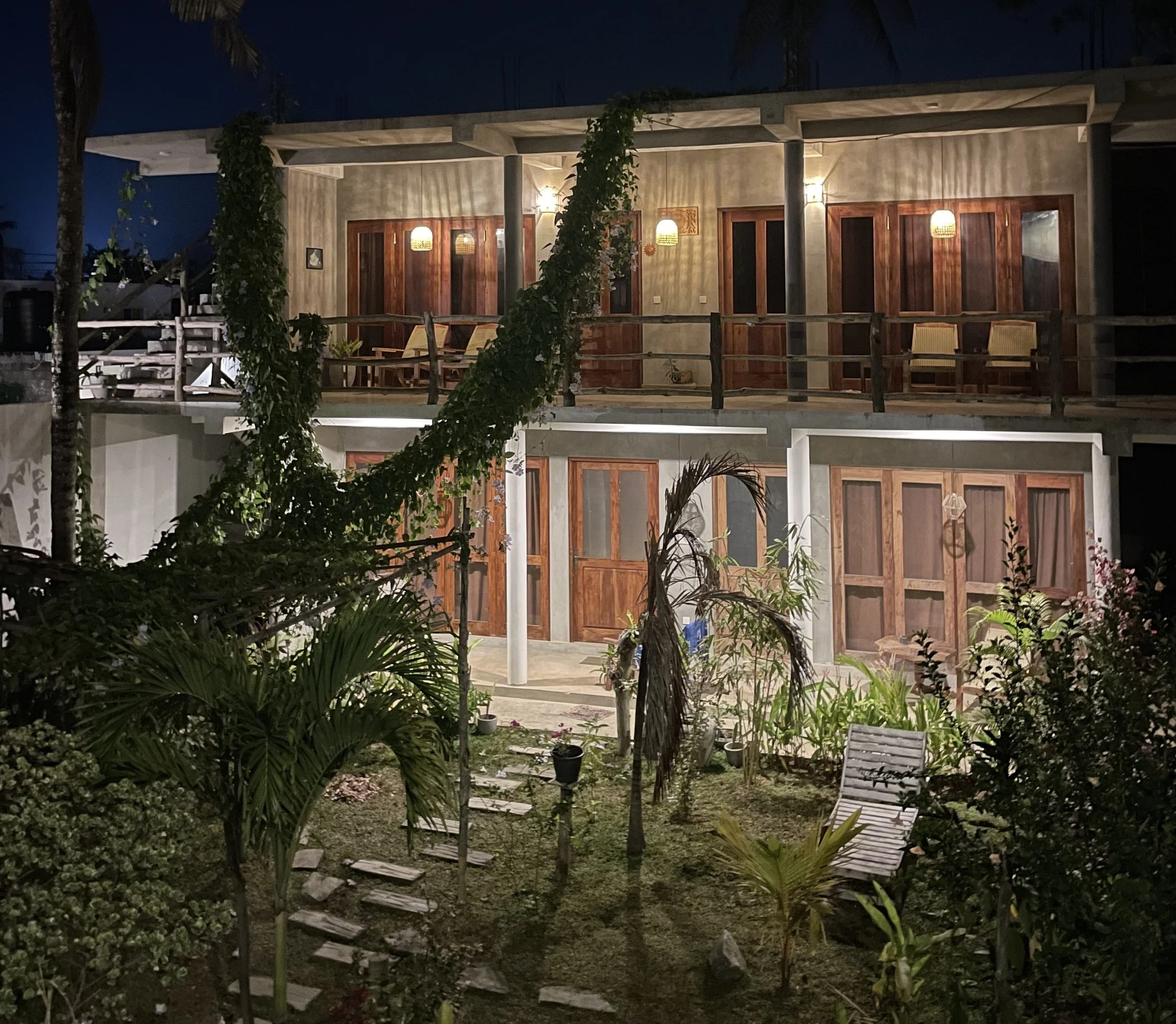 Coco Reef Retreat in Gurubebila Village, South West, Sri Lanka is a retreat offering 4 secluded large garden rooms over 2 stories , each with large separate ensuites and additional penthouse 3rd story appartments with attached kitchen, large lounging and viewing platform for entertaining friends and family.